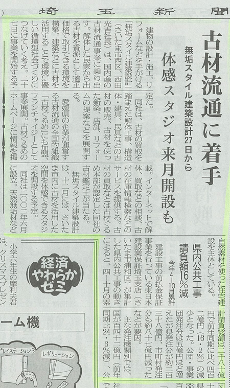 2005年11月23日(水)の埼玉新聞に無垢スタイル建築株式会社が紹介されました。