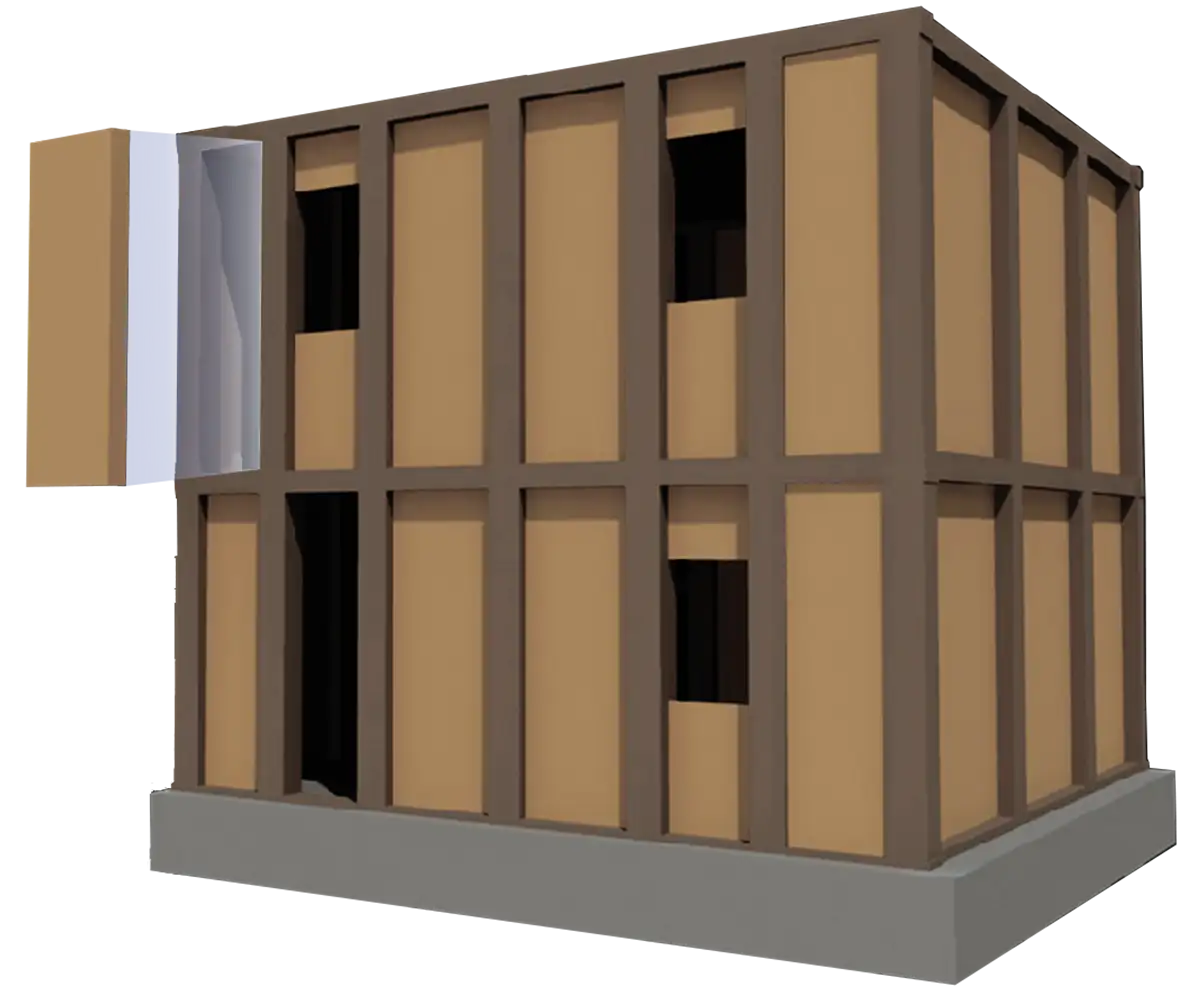 面材と枠材が一体になったパネルを柱と柱の間にはめ込むことで、今までの耐力壁にはない圧倒的な強さが実現。