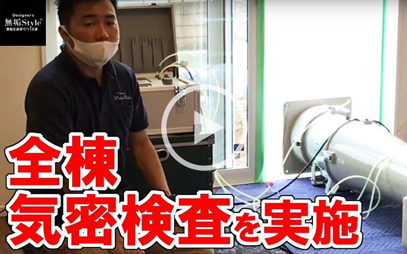 無垢スタイルでは、快適な住まいを提供するために全棟気密検査を実施。お引渡し直前の完成現場から気密測定検査の様子をご紹介します。