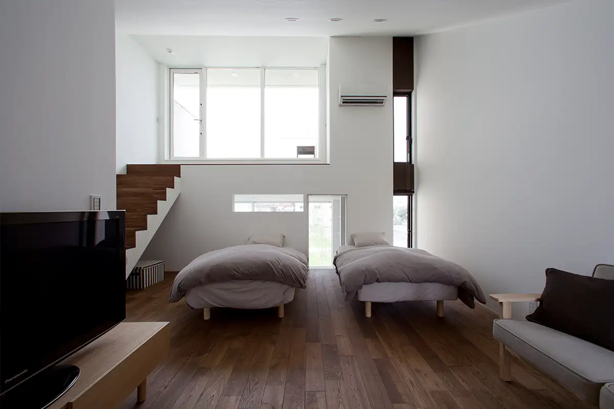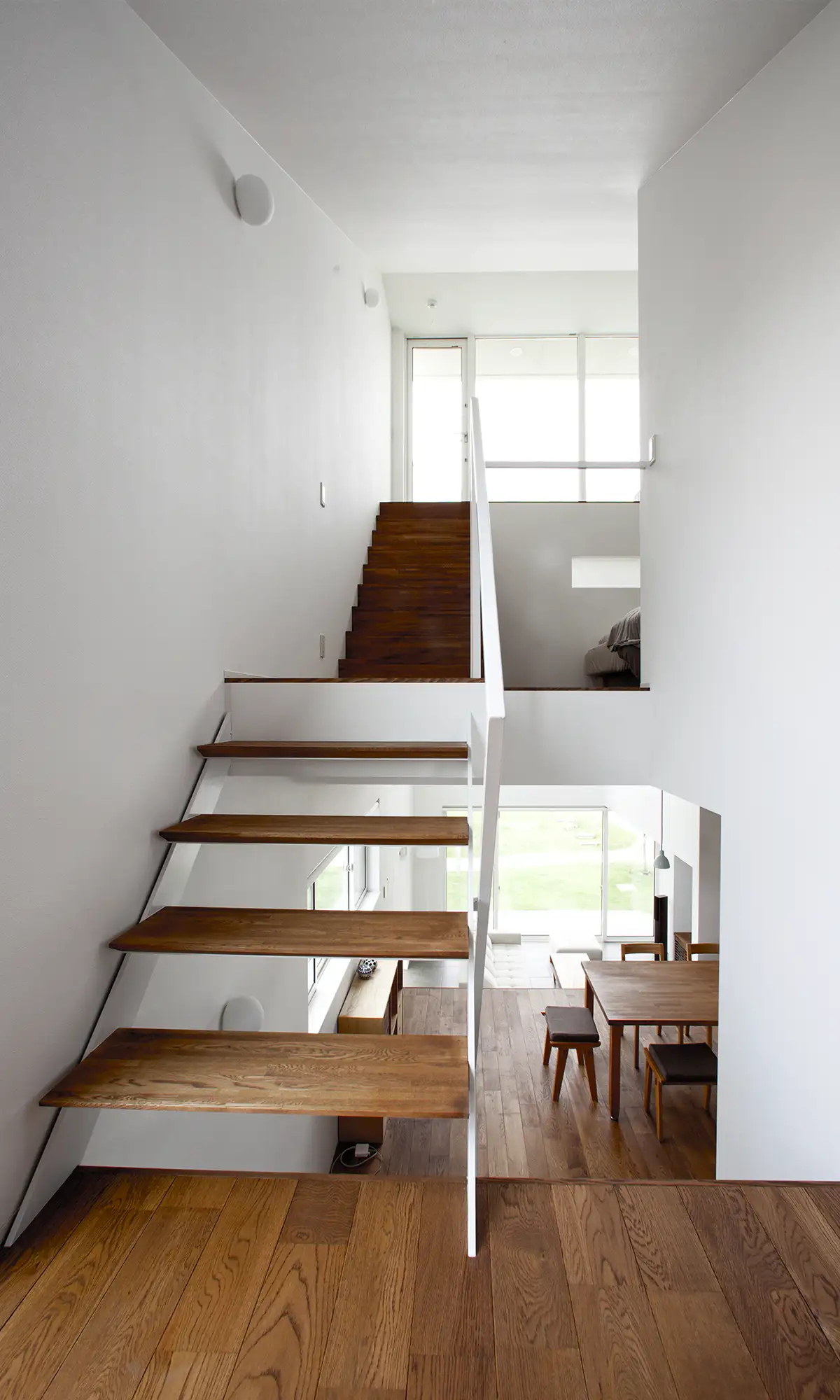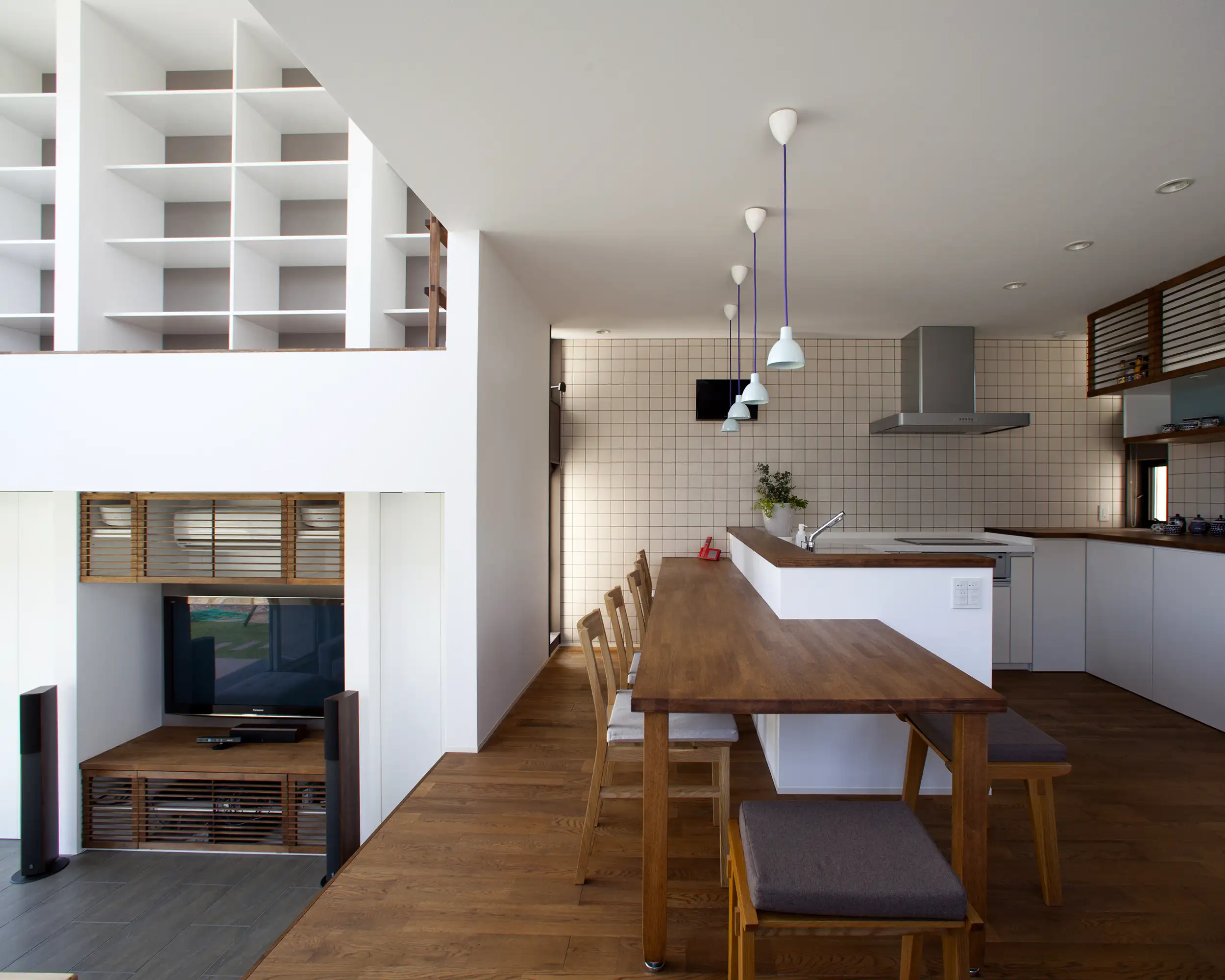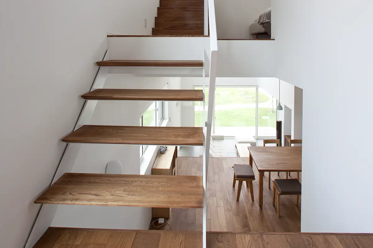 半階ずつずれながら空間がつながるスキップフロアは開放感を生みますが、在来工法では耐震性確保のため壁が増えがちです。SE構法なら構造計算により弱点を補い、安全で開放的なスキップフロアを実現できます。