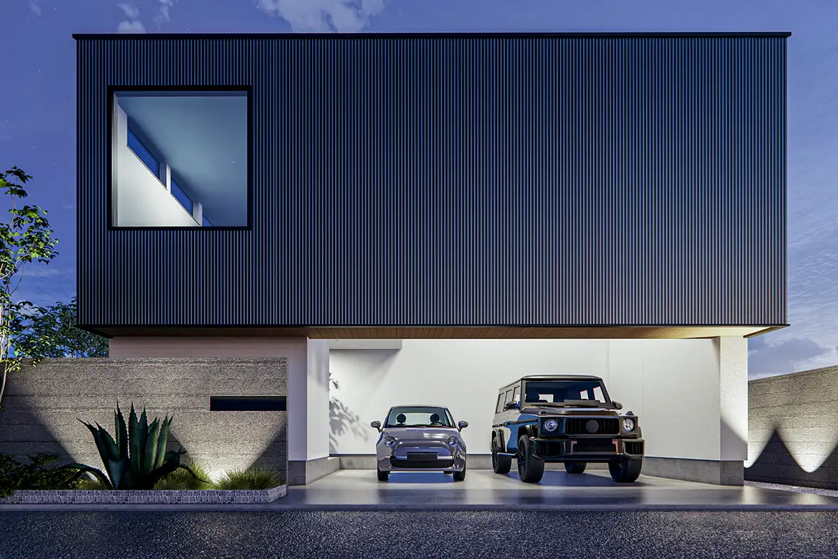 SE構法なら、最大3台まで駐車できる最大間口が9mまでのビルトインガレージを実現できます。敷地に余裕がなくても、自由度の高いプランによって駐車と居住スペースの両方を確保することが可能です。