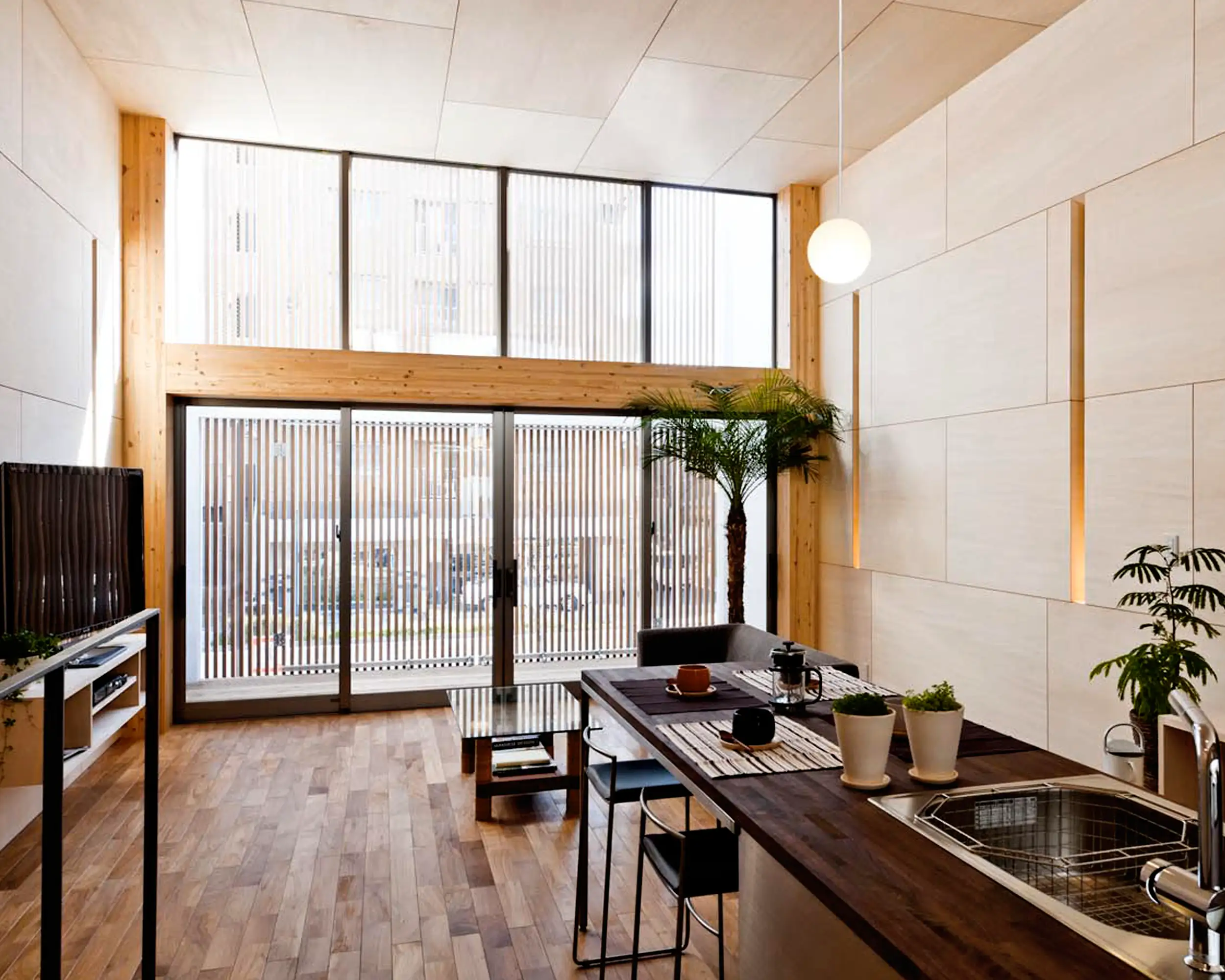中庭を設けることで明るく開放的な空間が生まれ、プライバシーも確保できます。SE構法なら中庭の壁も耐震性を保ちながら設計可能で、1階もカーテンいらずのアウトドアリビングとして活用できます。