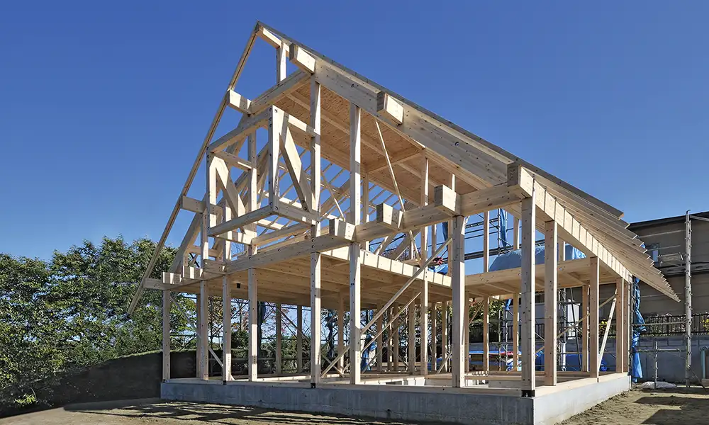 土地条件やプランに合わせて、基礎・土台・柱・梁まで一体で計算。地震力に耐える堅牢な構造を保証します。